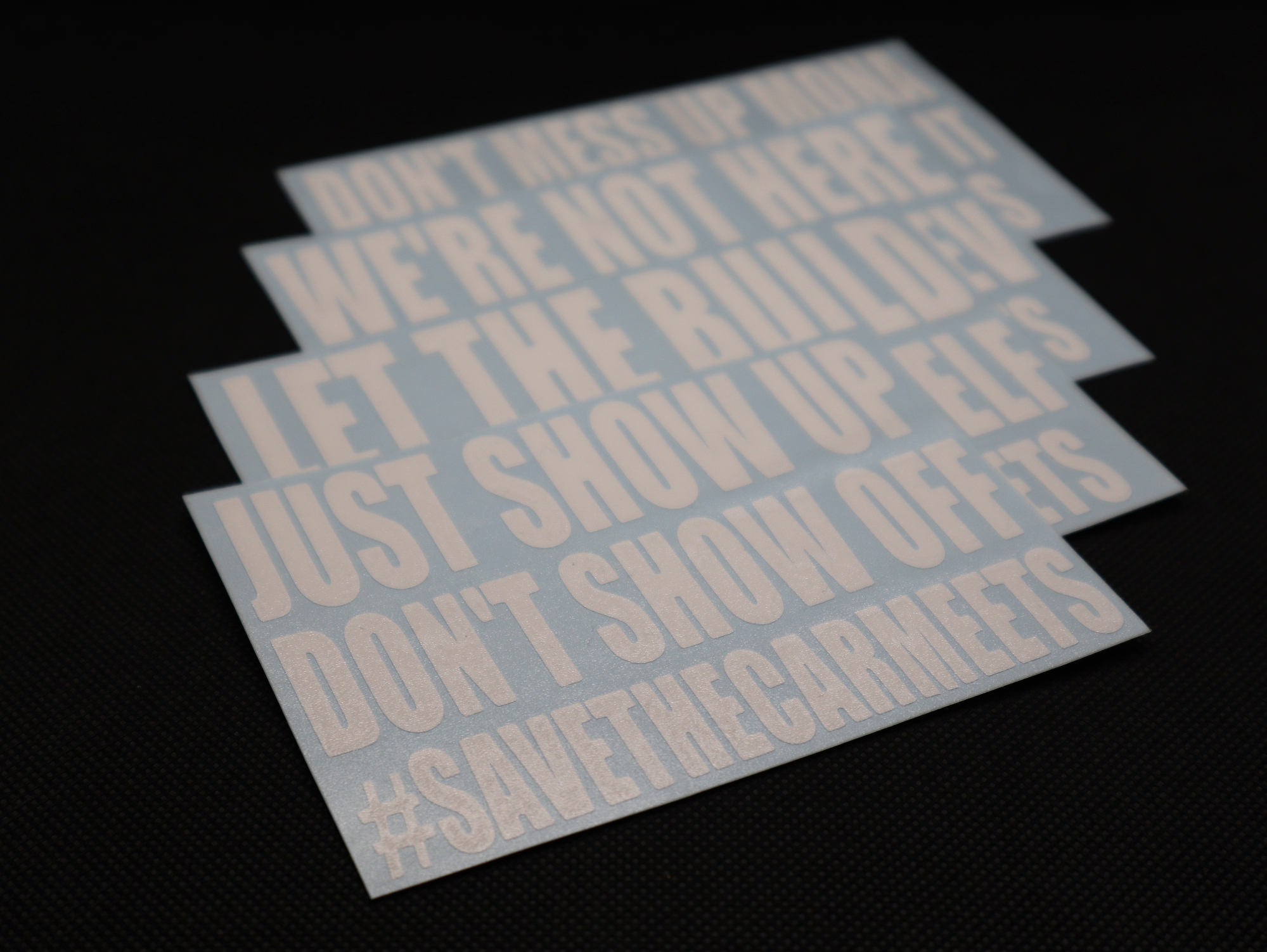 The immense support those original decals received led to new styles and sayings as we worked to further the reach of the movement to combat the inappropriate and dangerous behaviour that was spreading to meets the world over.
